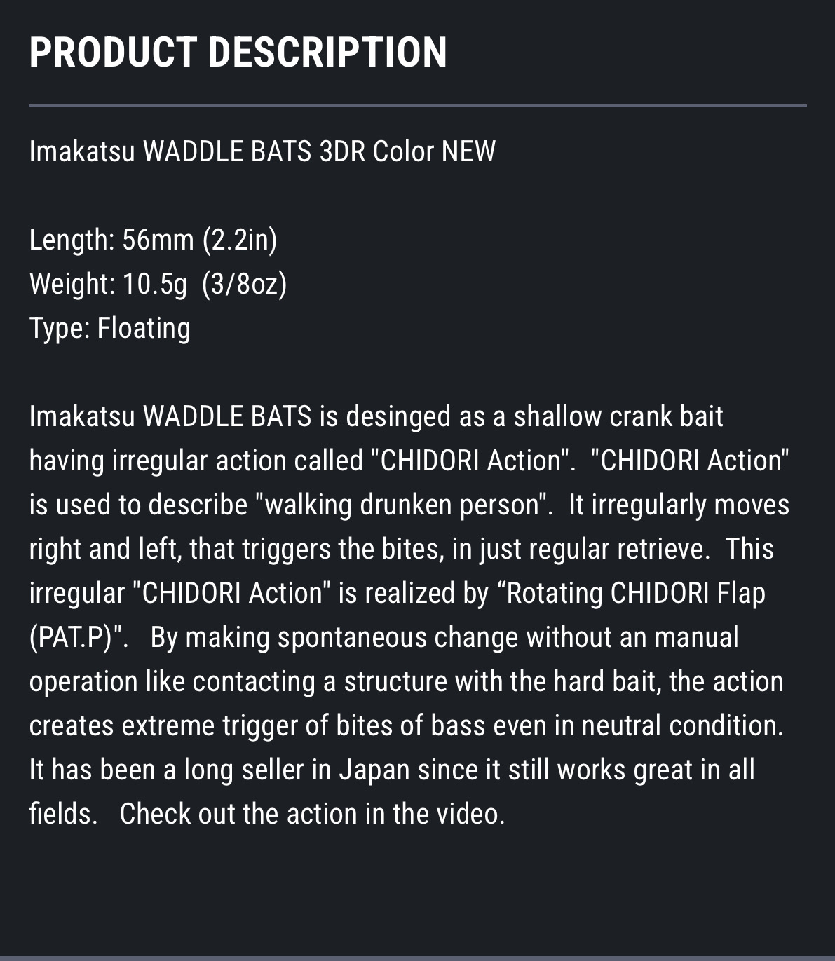 Imakatsu Waddle Bats GREAT New Kanbuna Kyomengin 3DR Finish With Underspin. 2.2”, .37oz. NIP